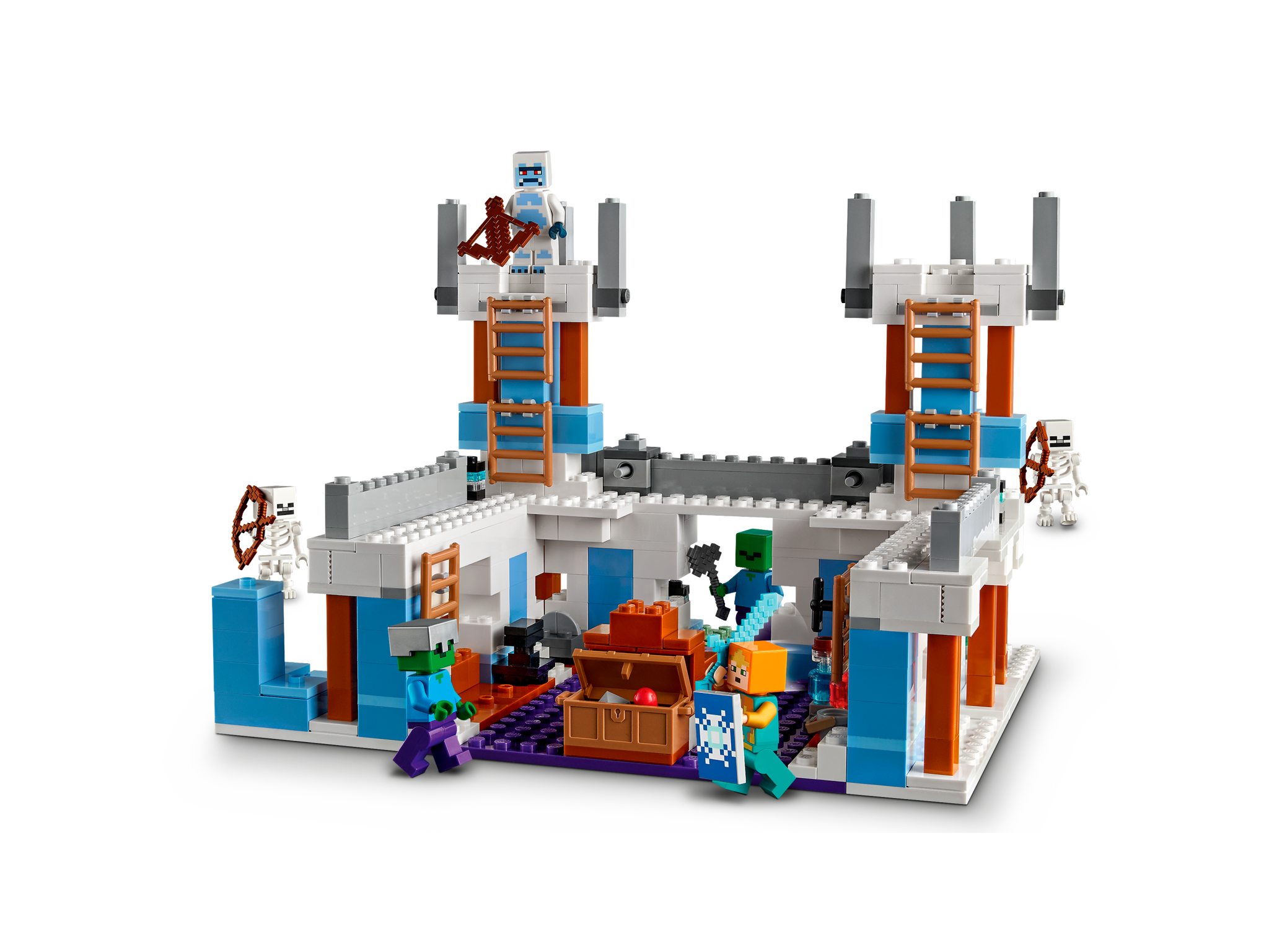 Das grandiose LEGO® Minecraft® Spielset „Der Eispalast“ (21186) lässt Kinder ab 8 Jahren kreativ werden und spannende Action erleben – genau wie im Videospiel Minecraft.Ein Minecraft-Set zum Bestaunen!Dieses vielseitige Set zum Bauen, Spielen und Ausstellen bietet Minecraft-Spielern unzählige Möglichkeiten. Ein Königlicher Krieger, ein Yeti sowie feindselige Skelette und Zombies und jede Menge coole Ausrüstung lassen dein Kind spannende Duelle im Palast darstellen. Ein Katapult auf der Festungsmauer feuert Pfeile auf die vorrückende Horde ab. Reichlich authentisches Zubehör aus dem Videospiel Minecraft lädt zum Spielen ein, unter anderem ein Kessel zum Brauen von Zaubertränken, eine Schatztruhe voll kostbarer Vorräte und eine klassische Werkbank. Nach dem Abenteuer lässt sich das Bauwerk mühelos umbauen, um eine kreative neue Minecraft-Welt zu erschaffen.