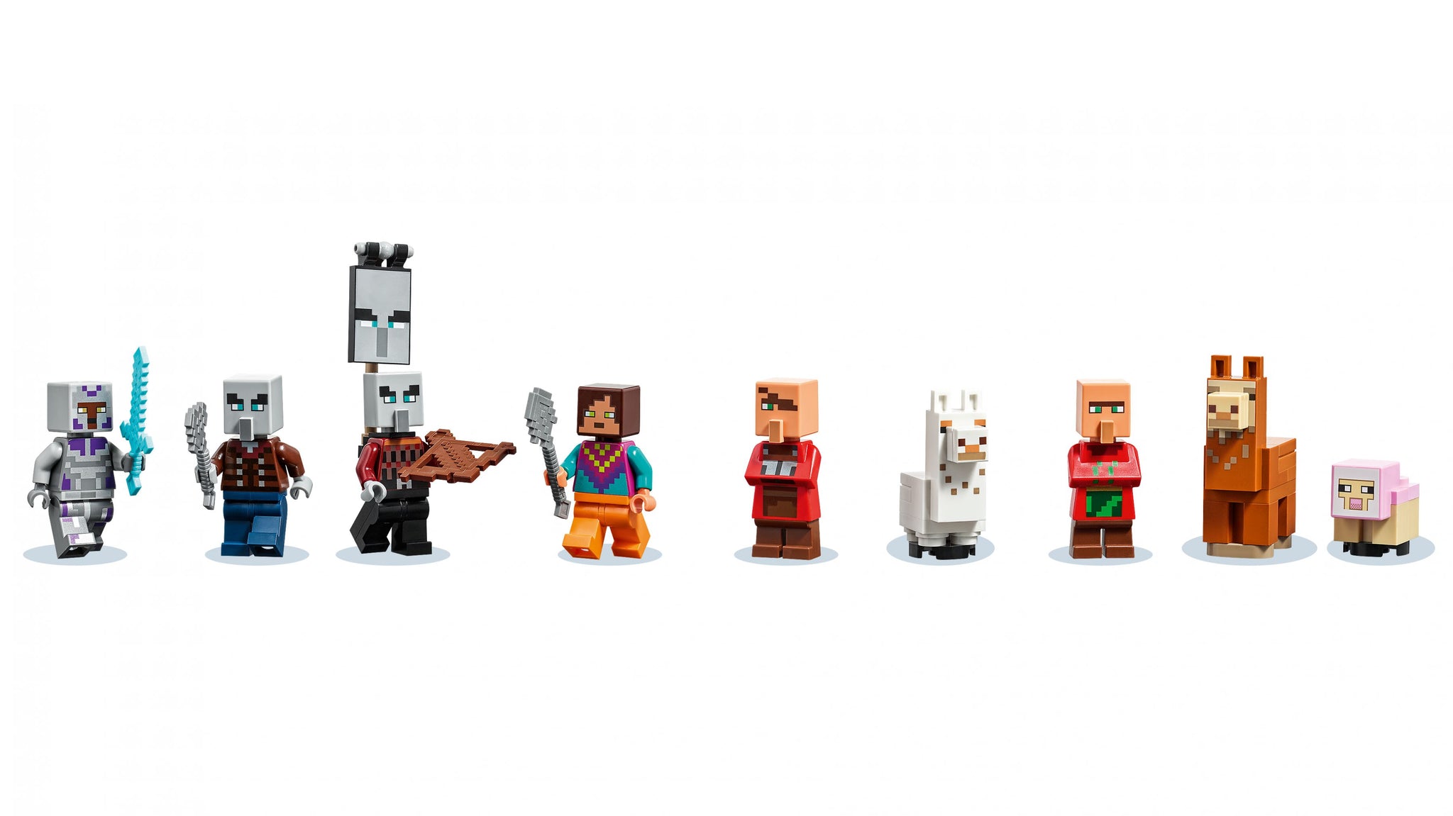 * Minecraft® Charaktere: Lamahirte, Lamaritter, Savannen-Dorfbewohner, Schmied-Dorfbewohner, Plünderer, Diener, Lama, Babylama und Lamm