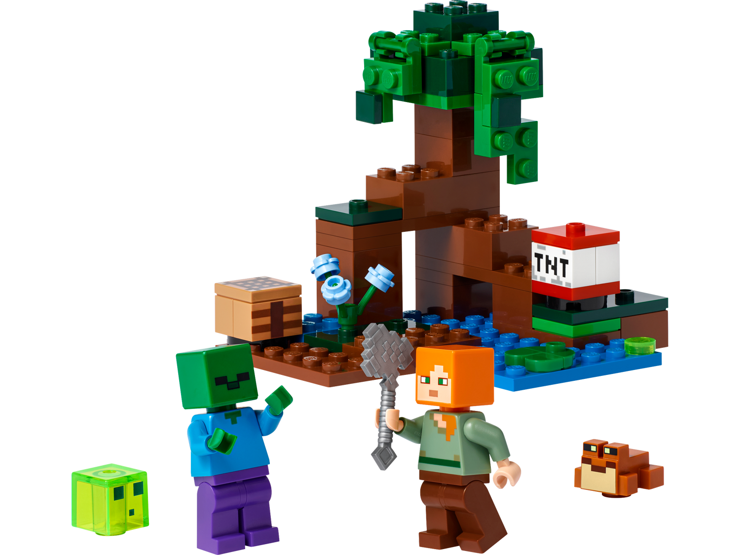 LEGO® Minecraft® Das Sumpfabenteuer (21240) ist eine tolle Belohnung für Minecraft Spielerinnen und Spieler ab 7 Jahren, die mit diesem Set aktiv bauen und kreativ spielen können.Faszinierendes Minecraft Spielzeug zum Bauen und ErkundenLass dein Kind mit dieser greifbaren Version des gefährlichen Sumpf-Bioms aus Minecraft kreativ bauen und spielen. Dieses vielseitige Spielzeug beinhaltet einen beliebten Minecraft Charakter: Alex streift bei diesem spannenden Abenteuer durch Morast und Mangroven. Neben all den kreativen Baumöglichkeiten sorgen auch 2 feindselige Monster – ein Zombie und ein Schleim – für reichlich Nervenkitzel. Ein freundlicher Frosch sitzt auf einem Seerosenblatt und beobachtet die spannenden Duelle. Alex kann ihre Axt schwingen. Und dein Kind kann den Hebel umlegen und das TNT explodieren lassen, um jeden Angriff abzuwehren. Für zusätzliches digitales Vergnügen beinhaltet die LEGO Builder App intuitiv nutzbare Vergrößerungs- und Drehfunktionen, die dein Kind das Modell beim Bauen näher betrachten lassen.
