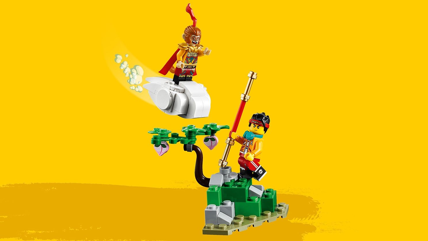 * Dieses Spielset enthält 6 Minifiguren, darunter auch Monkey King und Monkie Kid™ mit dem Goldenen Stab, eine Wolke als Baumodell auf einem Präsentationsständer sowie den „Berg der Blumen und Früchte“ als Minimodell, um eine legendäre Szene aus dem Leben von Monkie Kid™ nachzustellen.
