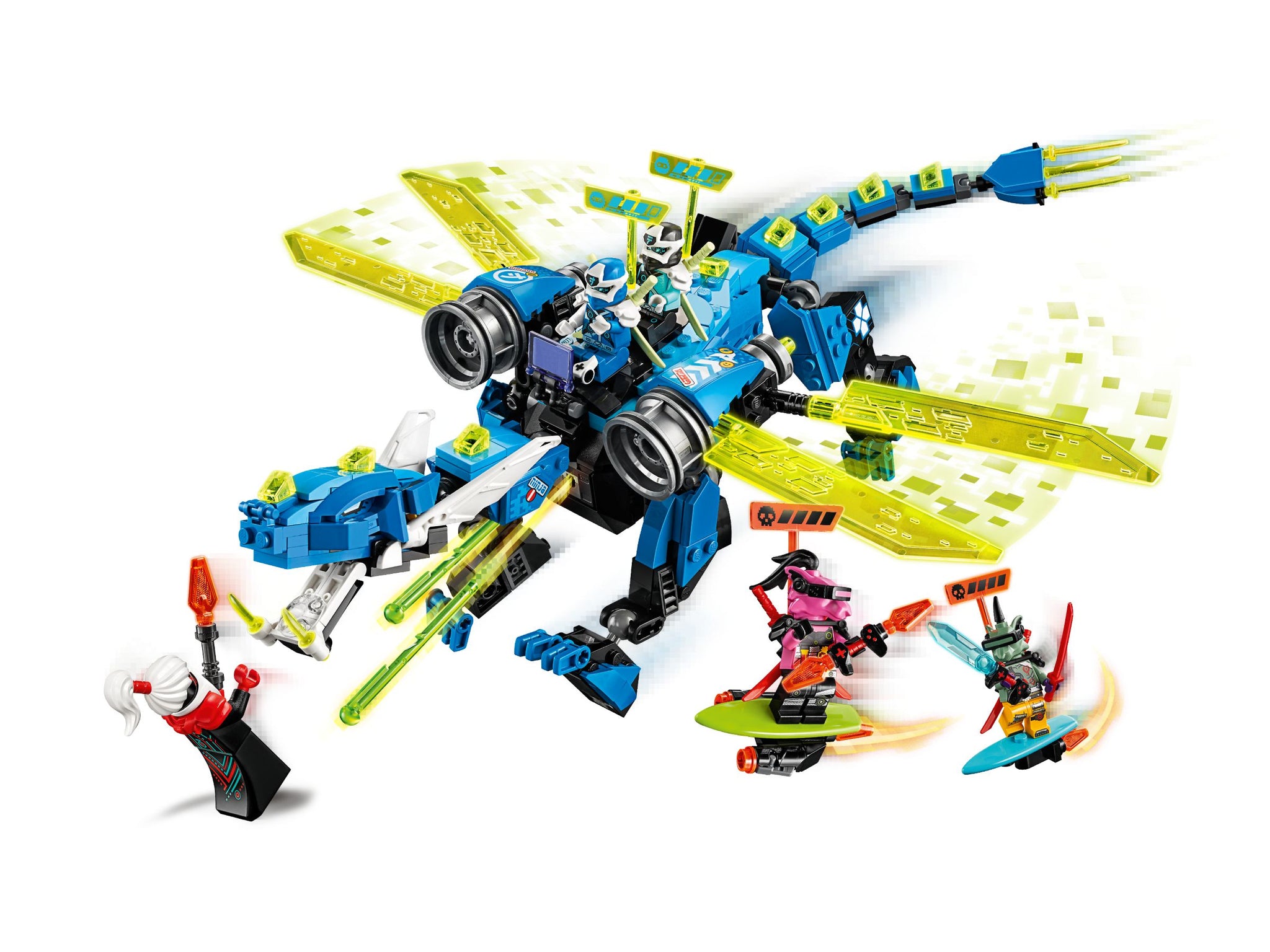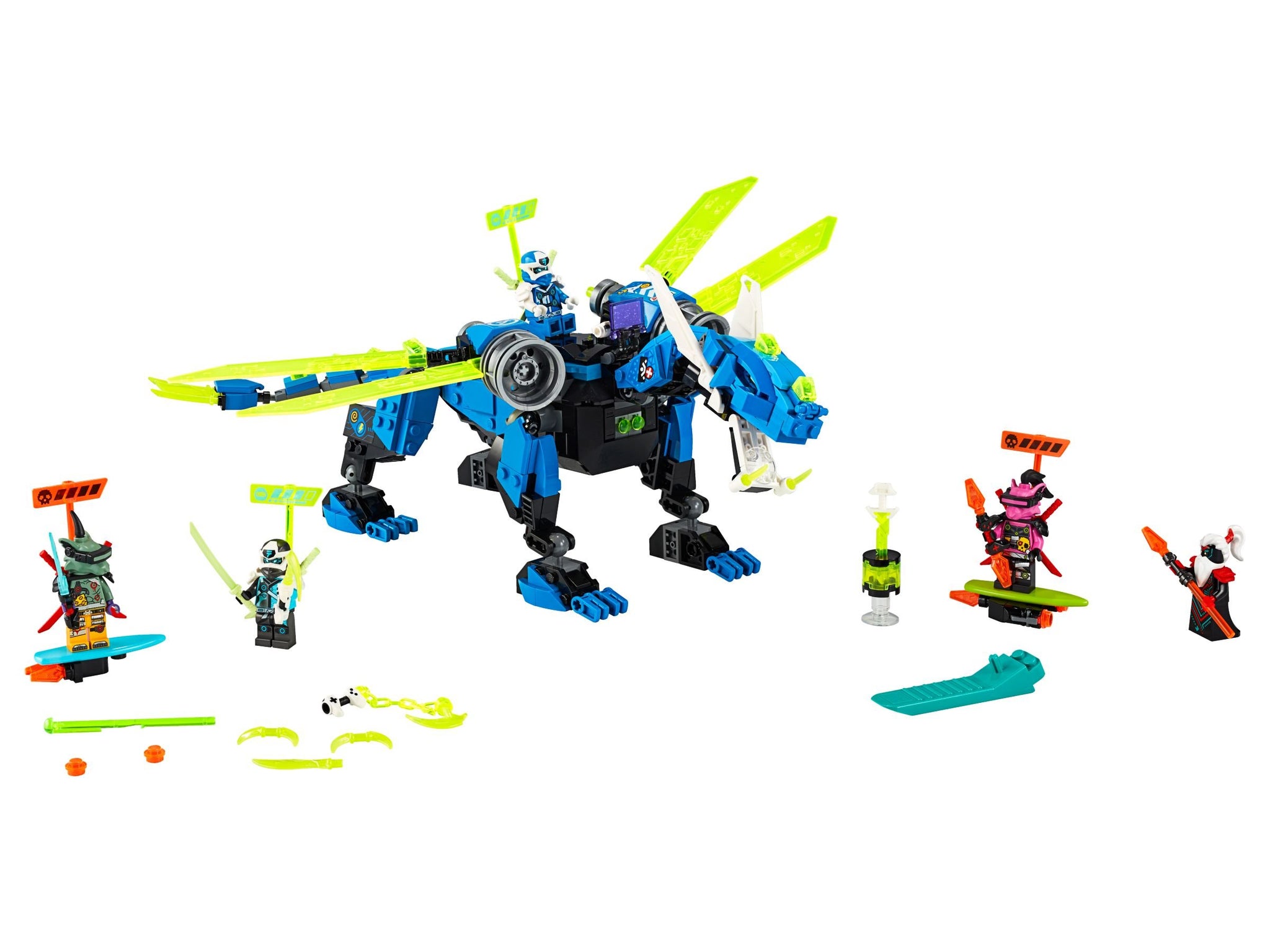 Das LEGO® NINJAGO® Bauspielzeug „Jays Cyber-Drache“ (71711) enthält 5 Minifiguren und wird die Fans der Ninja-Mechs begeistern, die mit diesem tollen Set actionreiche Geschichten in der Fantasiewelt des Videospiels „Prime Empire“ erleben können. Dieser fantastische LEGO® Drache ist äußerst beweglich und kann mit seinen Shootern Raketen abfeuern.Die besten Spielzeug-DrachenDie fünf NINJAGO® Baufiguren Digi Jay, Digi Nya, Unagami, Richie und Hausner lassen Ninja-Fans in die Welt des Videospiels „Prime Empire“ eintauchen und um das gelbe Key-Tana ringen. Kinder können die beiden Ninja ins Cockpit des megastarken Drachen-Mechs setzen und fantasievolle Abenteuer erleben.Die perfekten BauspielzeugeLEGO® NINJAGO® Bauspielzeuge bieten Kindern Zugang zu einer Welt voller Abenteuer, in der sie ihren geliebten Ninja-Helden gegen die Kräften des Bösen beistehen. NINJAGO Fans lieben Rollenspiele mit den fantastischen Ninja-Autos, Drachenmodellen, Tempel und Baufiguren.