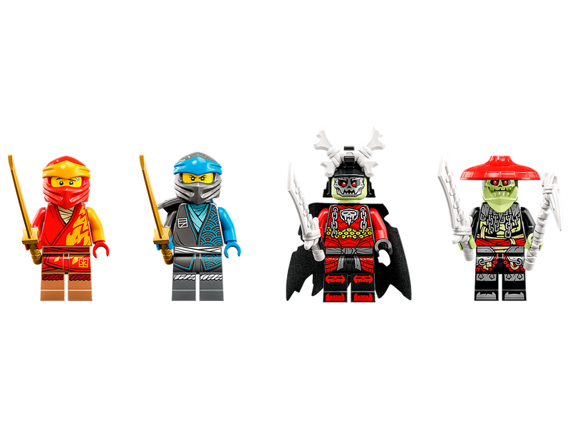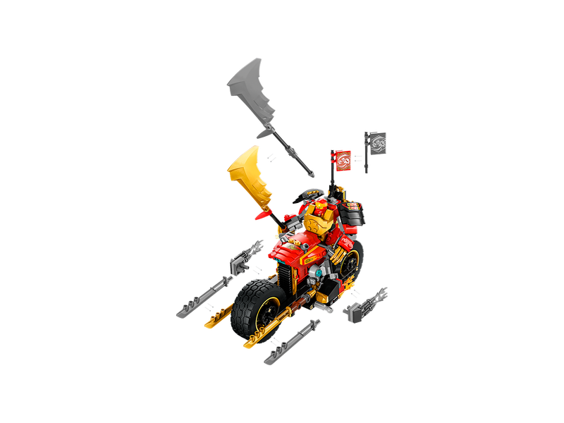 Kais Mech-Bike EVO (71783) ist ein Spielset, das Baumeisterinnen und Baumeister ab 7 Jahren sowie Fans cooler Flitzer eigene packende Duelle zwischen Gut und Böse austragen lässt. Das Set beinhaltet einen beweglichen Mech und ein cooles Bike. Durch ein Upgrade mit goldenen Seitenblenden und einer großen goldenen Klinge kann man das Motorrad in ein noch größeres Modell verwandeln.Duelle zwischen Gut und BöseDieses Bauset beinhaltet 4 Minifiguren: Kai und Nya tragen Schwerter, der Skelett-König schwingt sein eigenes Schwert und der Skelett-Jäger hat eine Knochenhacke und ein Schwert. Wenn dein Kind die Herausforderung meistert, wird es mit dem Banner der Konzentration belohnt, das am Ninja-Bike befestigt werden kann.Cooles digitales Bauerlebnis für LEGO BaumeisterDie LEGO Builder App begleitet dich und dein Kind auf ein leichtes und intuitives Bauabenteuer. Vergrößere und drehe 3D-Ansichten der Modelle, speichere Sets und verfolge deinen Baufortschritt.