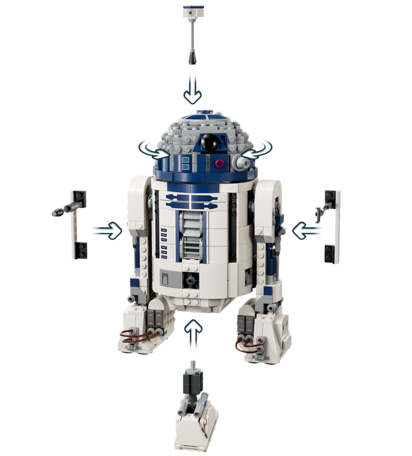 Lass dein Kind mit R2-D2 (75379) aus LEGO® Steinen seine Begeisterung für den beliebtesten Droiden aus der Star Wars™ Galaxis zeigen. Dieses Modell zum Bauen, Spielen und Ausstellen für Jungen und Mädchen ab 10 Jahren strotzt vor authentischen Funktionen, um klassische Filmszenen nachstellen oder eigene originelle Fantasy-Geschichten darstellen zu können. Man kann den Kopf von R2-D2 um 360 Grad drehen und außerdem ein drittes Bein, ein Sehrohr und Werkzeug an ihm befestigen.Dieses Bau- und Spielset zum Sammeln und Ausstellen beinhaltet den LEGO Droiden R2-D2 und eine Infoplakette zu dem Charakter. Die spezielle Minifigur Darth Malak mit Lichtschwert und Ständer vollendet den spektakulären Hingucker zur Feier des 25-jährigen LEGO Star Wars Jubiläums.Dieses Bau- und Spielset ist ein faszinierendes Geschenk für Star Wars Fans und Sammler von Star Wars Souvenirs. Schritt-für-Schritt-Bauanleitungen liegen bei. Schau dir auch unbedingt die LEGO Builder App an, die für ein noch kreativeres Erlebnis Funktionen zum Drehen und Vergrößern digitaler Modellansichten beinhaltet.