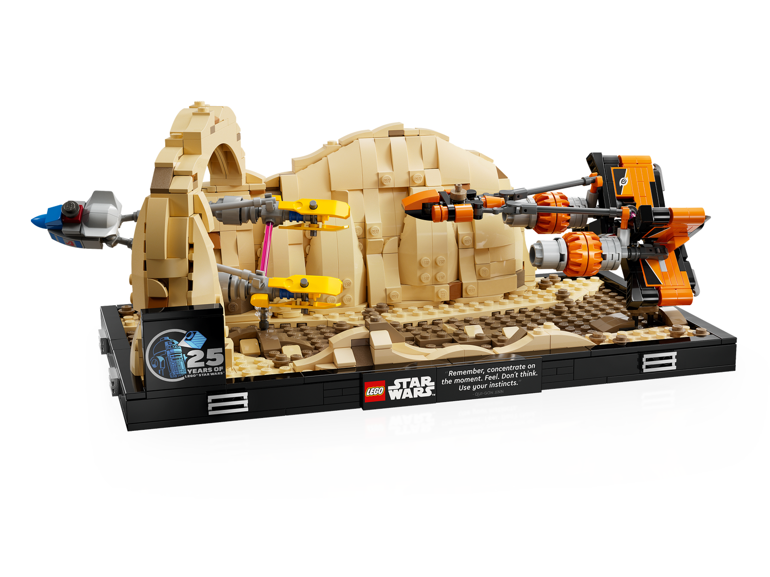 Halte einen Augenblick aus dem packenden Podrennen in Mos Espa mit diesem LEGO® Star Wars™ Diorama (75380) fest. Dieses Bauset zum Sammeln und Ausstellen lässt dich die Macht beschwören, genau wie Anakin Skywalker in Star Wars: Die dunkle Bedrohung, um einen Schnappschuss der Szene, in der Anakin in seinem Podracer den Rivalen Sebulba durch einen Felsbogen in der Schlucht verfolgt, mit LEGO Steinen nachzubilden.Dieses imposante Modell zum Bauen und Ausstellen wird durch eine Plakette mit Qui-Gon Jinns Ratschlag „Remember. Concentrate on the moment. Feel. Don't think. Trust your instincts.“ und einem LEGO Stein zur Feier des 25-jährigen LEGO Star Wars Jubiläums vollendet.Die LEGO Builder App bietet dir sogar ein noch faszinierenderes kreatives Erlebnis, denn sie lässt dich unter anderem beim Bauen eine digitale 3D-Version dieses Bauspielzeugs vergrößern und drehen.Dieses baubare Modell gehört zu einer Kollektion von LEGO Star Wars Sets für Erwachsene. Die Dioramen stellen legendäre Szenen dar. Dieses Set ist ein tolles Geschenk für dich selbst oder andere erwachsene Star Wars Fans.