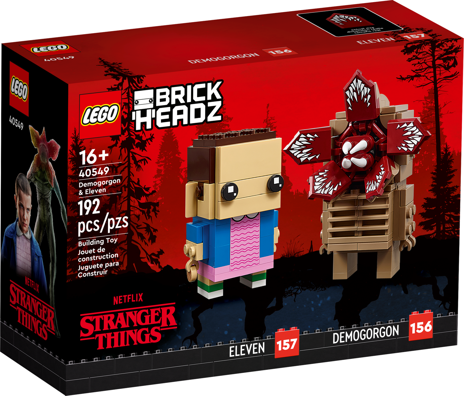 Tolles Geschenk für Fans der Netflix-Serie Stranger Things™. Die LEGO® BrickHeadz™ Baufiguren „Demogorgon & Elfi“ (40549) stellen zwei der legendärsten Charaktere der Serie dar. Die Figuren zum Ausstellen sind eine fantastische Geschenkidee für Fans ab 16 Jahren und beeindrucken mit authentischen Details wie dem Kopf des Demogorgon, der sich wie eine Blüte öffnet, oder Elfis Waffel und dem Outfit, das sie bei ihrer Flucht aus der Einrichtung trägt.