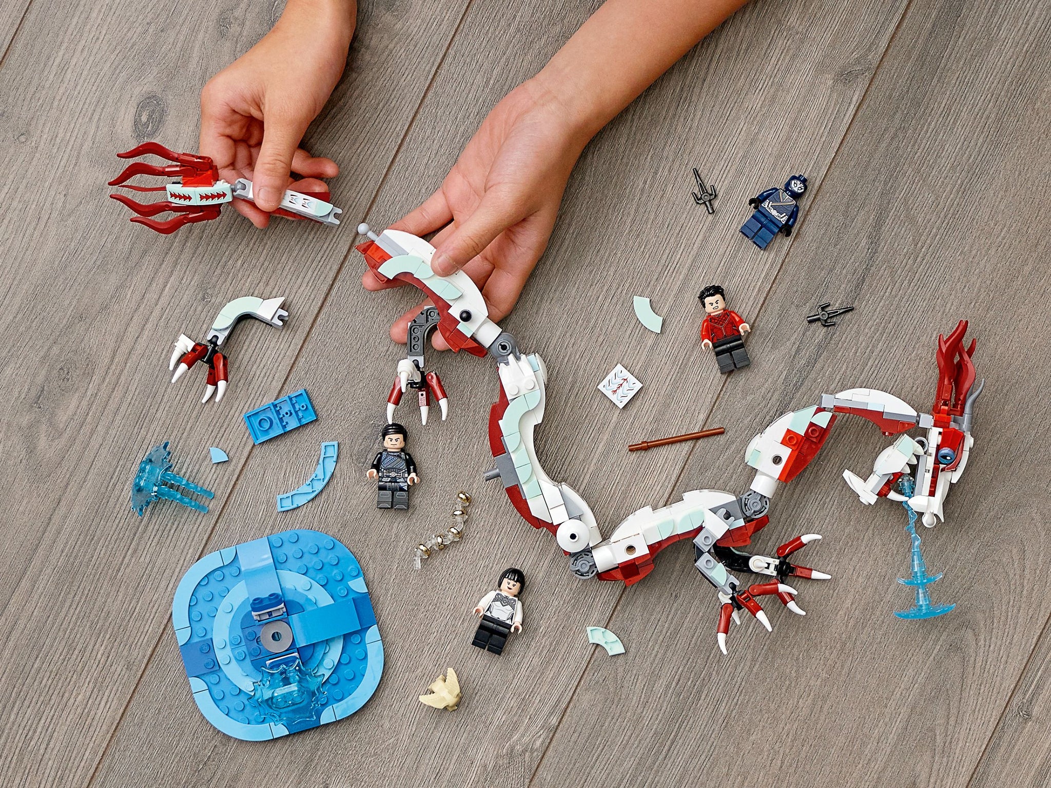 * Beinhaltet 4 Minifiguren – Shang-Chi, Xialing, Wenwu und Death Dealer – sowie einen baubaren beweglichen Drachen mit abnehmbarer Wassergrundplatte.