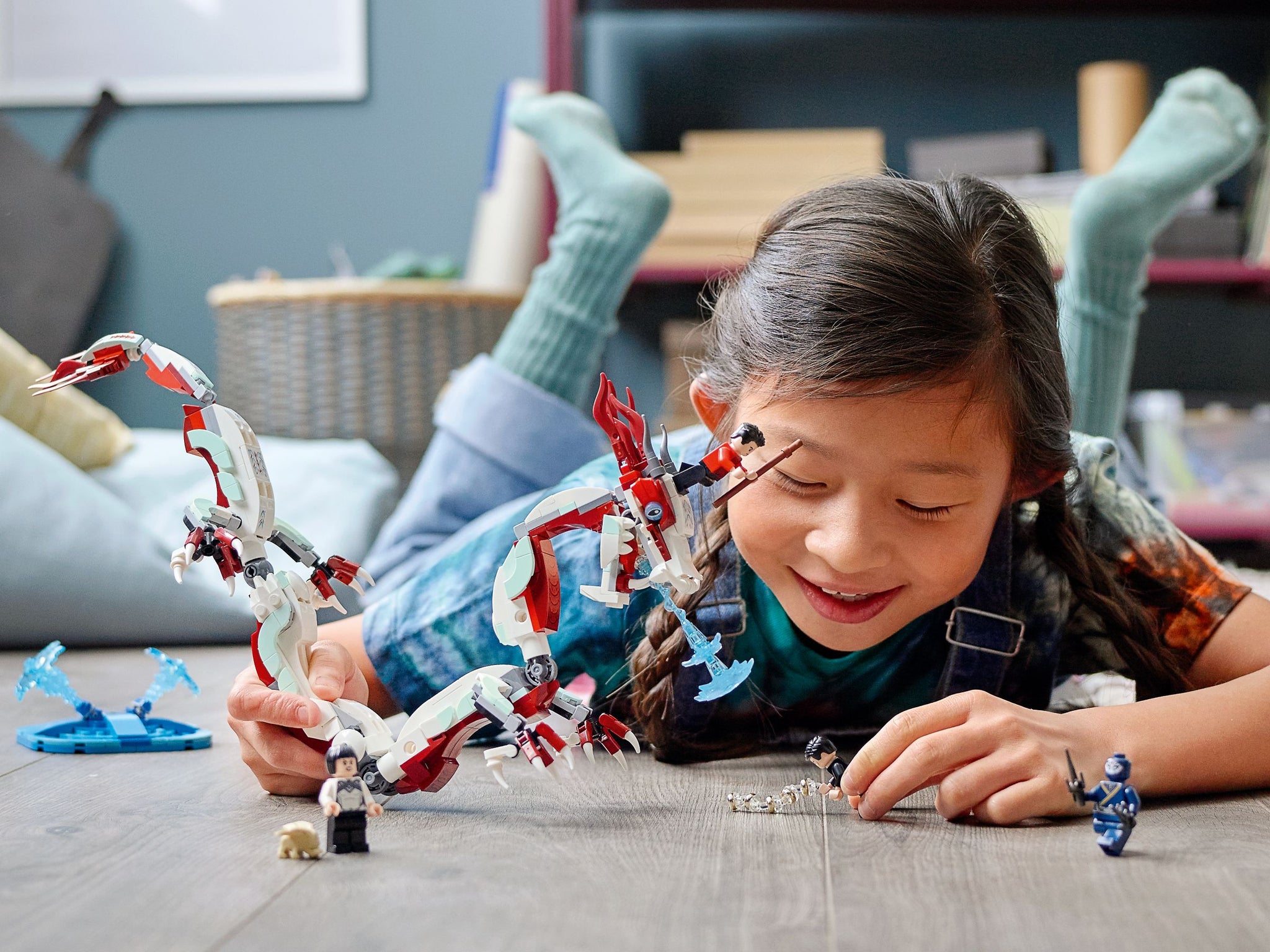 Der schlangenartige Drache dreht und windet sich. 4 bekannte Minifiguren aus dem Film, Shang-Chi, Wenwu, Xialing und Death Dealer, inspirieren zu spannenden Rollenspielen. 2 Minifiguren können auf der Wassergrundplatte des Drachen befestigt werden, um Actionszenen nachzustellen. Die Wassergrundplatte kann man abnehmen, um das Duell an Land fortzusetzen. Mit LEGO Bausets lassen sich Marvel Abenteuer wunderbar nachspielen. Kinder werden dieses fantastische Spielzeug zum Bauen, Spielen und Ausstellen lieben.