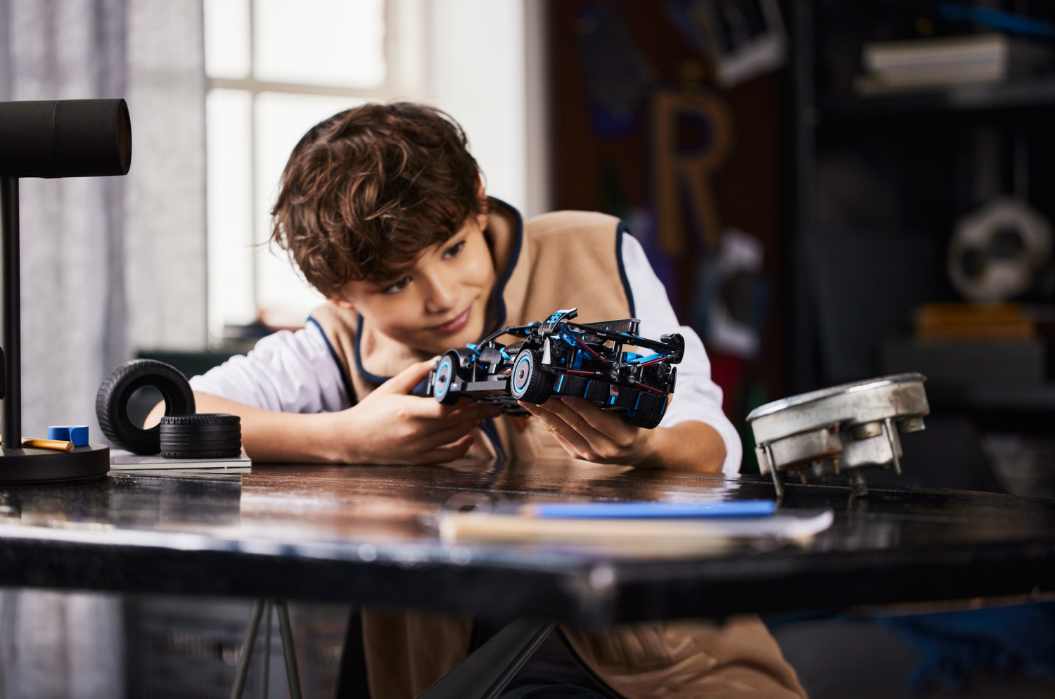 Der LEGO® Technic Bugatti Bolide Agile Blue (42162) inspiriert Kinder ab 9 Jahren dazu, einen eigenen Rennwagen zu bauen. Bei diesem anspruchsvollen Bauprojekt kann dein Kind originalgetreue Details wie den funktionierenden W16-Motor, die bewegliche Lenkung und die aufklappbaren Scherentüren nachbilden. Mit der blauen Lackierung und den authentischen Grafiken zum Aufkleben stiehlt das Auto allen die Show. Nachdem dein Kind das Modell gebaut und gründlich erkundet hat, kann es das spektakuläre Sammlerstück ausstellen.Tolle Einführung in die Welt der TechnikLEGO Technic Bau- und Spielsets stellen die Bewegung und die Mechanik der Modelle realistisch und verständlich dar, um junge LEGO Baumeister an die Welt der Technik heranzuführen. Biete deinem Kind ein intuitives Bauabenteuer mit der LEGO Builder App. In der App kann dein Kind 3D-Ansichten der Modelle vergrößern und drehen, Sets speichern und seinen Baufortschritt verfolgen.