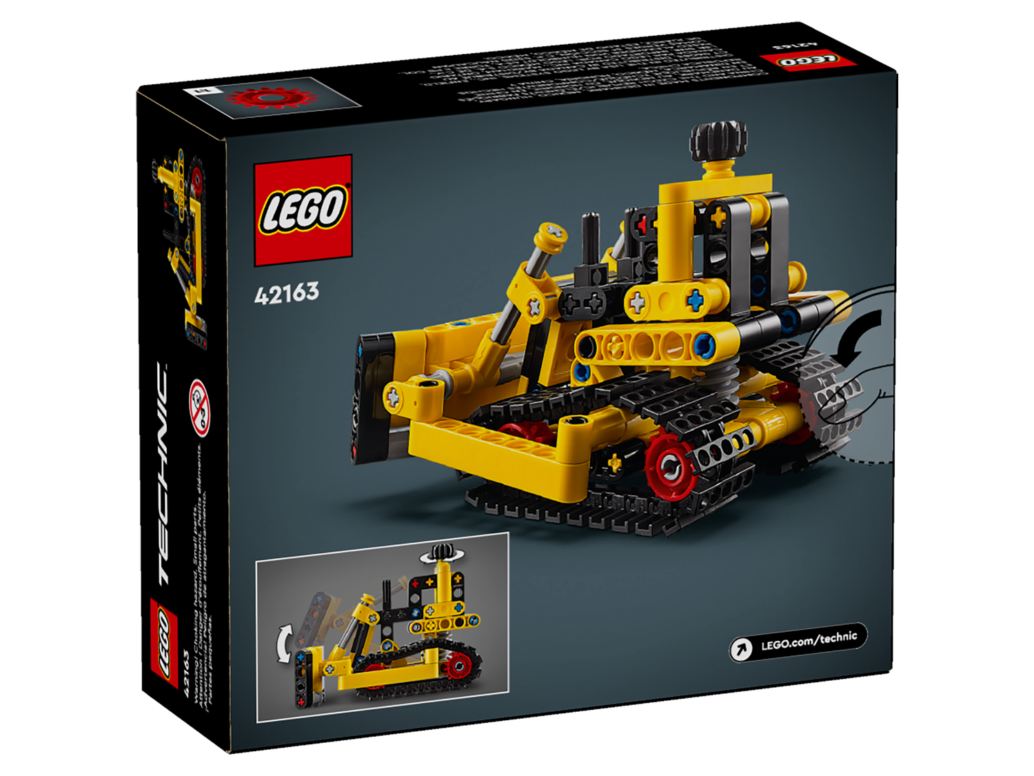 Der LEGO® Technic Schwerlast Bulldozer (42163) ist eine tolle Belohnung für junge Fahrzeugfans ab 7 Jahren, die Bauspielzeug lieben. Die gelbe Lackierung nach dem Vorbild echter Baumaschinen weckt die Fantasie junger Baumeister, die noch keine Technic Modelle gebaut haben. Diese gewaltige Planierraupe lässt Jungen und Mädchen neue Baufähigkeiten entwickeln. Zu den authentisch nachgebildeten Details zählen auch die Ketten und der Planierschild, den die Kinder mit dem Drehknauf oben auf dem Bulldozer anheben oder herablassen können. Dieses Set ist eine grandiose Geschenkidee für Kinder, die Fahrzeuge lieben.LEGO Technic Bausets überzeugen durch realistische Details, die jungen LEGO Baumeisterinnen und Baumeistern technische Konzepte auf verständliche Weise näherbringen. Biete deinem Kind mit der LEGO Builder App ein spannendes Bauerlebnis. Mit den enthaltenen Funktionen kann dein Kind digitale 3D-Modellansichten vergrößern und drehen und seinen Baufortschritt verfolgen.