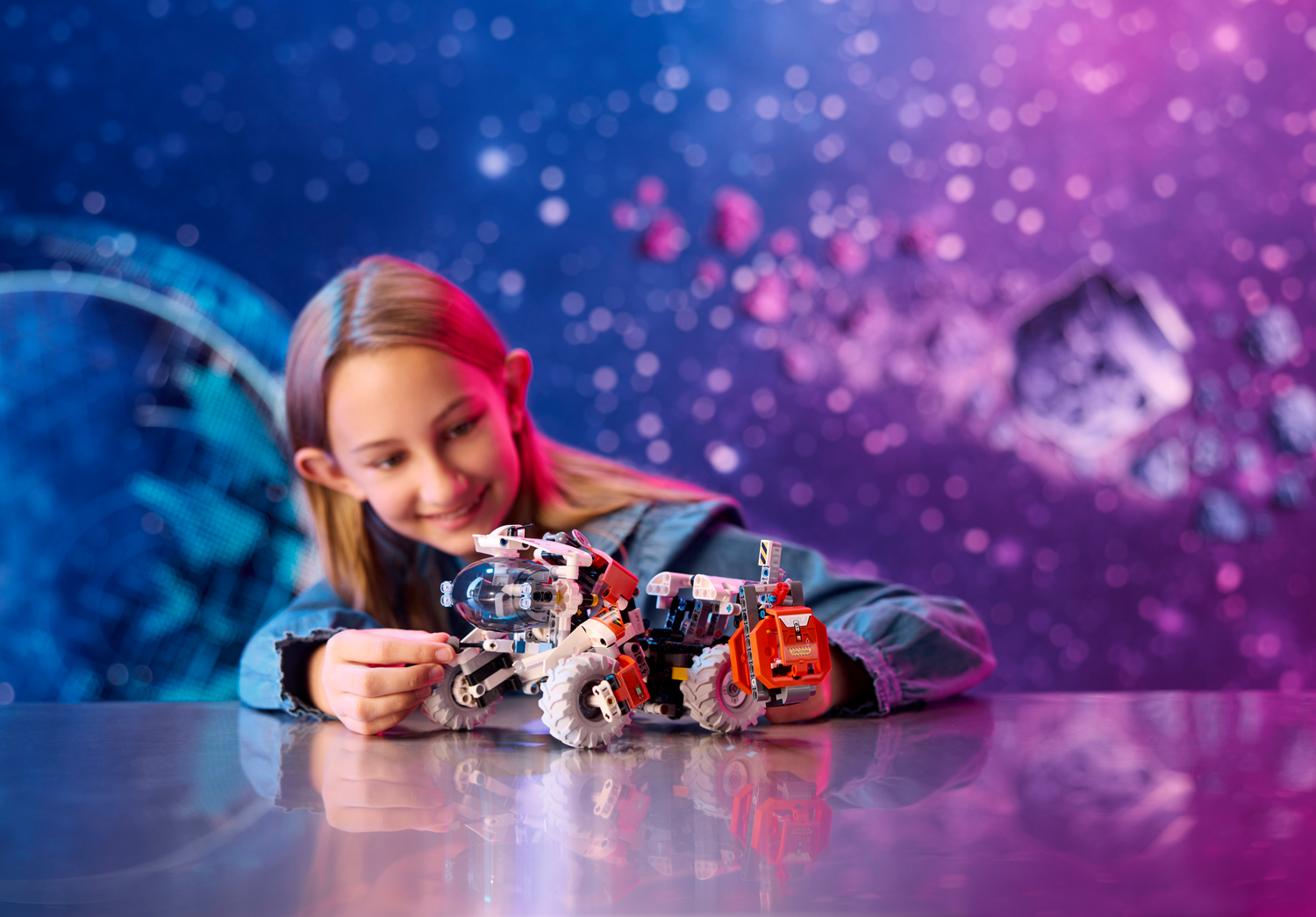 * Raumfahrzeug für Kinder ab 8 Jahren: Dieser Transporter zur Erforschung fremder Planeten hat eine Lenkung, eine Funktion zum Anheben und Absenken der Kabine sowie einen Kran mit Führerhaus, um Jungen und Mädchen fantasievoll spielen zu lassen* Hebe und senke den Kranarm: Kinder können das Führerhaus hochfahren und den Kranarm heben und absenken, um Fracht zu greifen und zu bewegen* Kommt in jedem Gelände zurecht: Junge Weltraumforscher können das Fahrzeug erproben und so tun, als würden sie auf einem anderen Planeten leben und arbeiten* Geschenkidee für Kinder: Dieses Set ist ein tolles Geschenk für Jungen und Mädchen, die gern Spielzeug-Raumfahrzeuge bauen* Luftschleuse zum Andocken an andere Modelle: Eine spezielle Luftschleuse lässtdein Kind das Modell für weitere Abenteuer auch an andere kompatible (separat erhältliche) LEGO® Raumfahrt-Sets andocken* Intuitive Anleitung: Die LEGO® Builder App nimmt dein Kind auf ein intuitives Bauabenteuer mit. Coole Funktionen lassen Kinder 3D-Ansichten der Modelle vergrößern und drehen, Sets speichern und ihren Baufortschritt verfolgen* Abmessungen: Das Modell aus diesem 435-teiligen Set ist 9 cm hoch, 20 cm lang und 19 cm breit