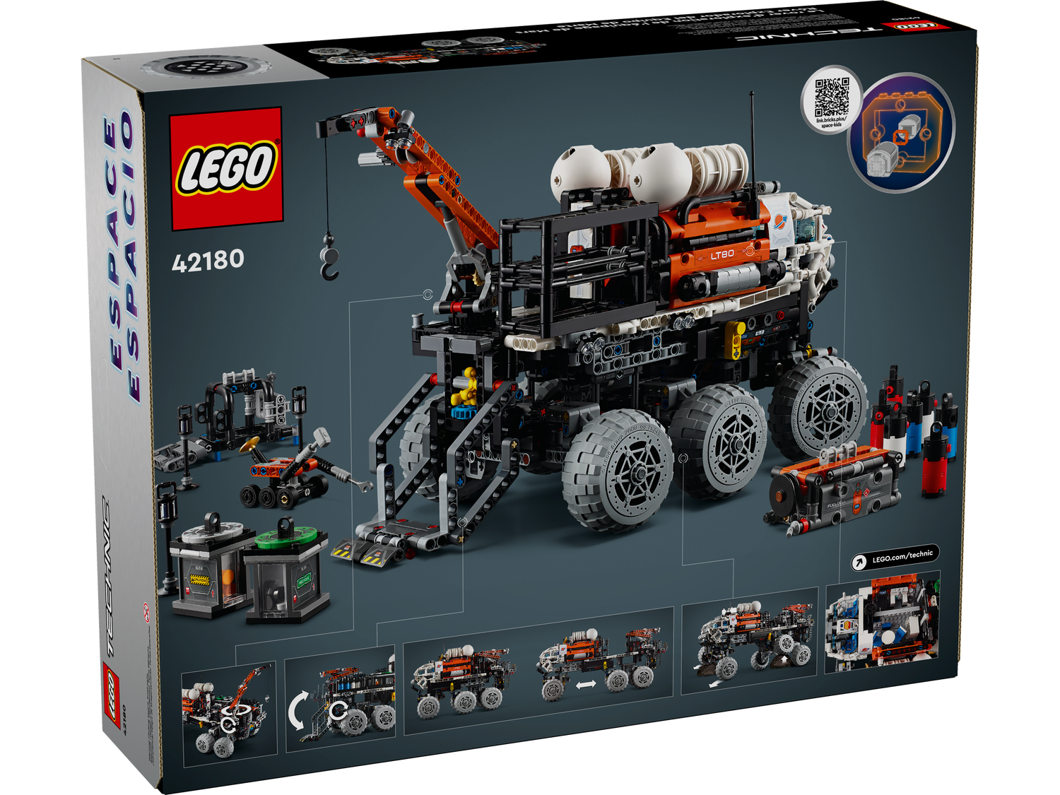 Der LEGO® Technic Mars Exploration Rover (42180) ist ein Spielset für Jungen und Mädchen ab 11 Jahren, die Raumfahrt-Spielzeug lieben. Mit dem Modell kann dein Kind viel Wissenswertes über Marsmissionen lernen. Junge Forscher werden an dem detailgetreuen Spielzeug-Marsrover jede Menge authentische Funktionen entdecken. Zieht man das Modell auseinander, kommt die Ladefläche zum Vorschein. Und wenn dein Kind das Fahrzeug dann in die richtige Position manövriert, kann es auch gleich die Federung testen. Mit dem Kran lassen sich der Rover-Roboter, Werkzeuge und der Brennstoffreaktor hochhieven. In der Kabine der Crew befinden sich Sitze, eine Dusche, eine Toilette, ein Laufband und ein Kühlschrank. Außerdem gibt es eine Aufzugfunktion, Behälter für Gesteinsproben, Gasflaschen und Wasserkanister.Zu dem Set gehört auch eine spezielle Luftschleuse, damit Kinder das Modell für weitere Abenteuer auch an andere kompatible (separat erhältliche) LEGO Raumfahrt-Sets andocken lassen können. Die LEGO Builder App bietet Kindern ein intuitives Bauabenteuer. In der App kann dein Kind 3D-Ansichten der Modelle vergrößern und drehen, Sets speichern und seinen Baufortschritt verfolgen.
